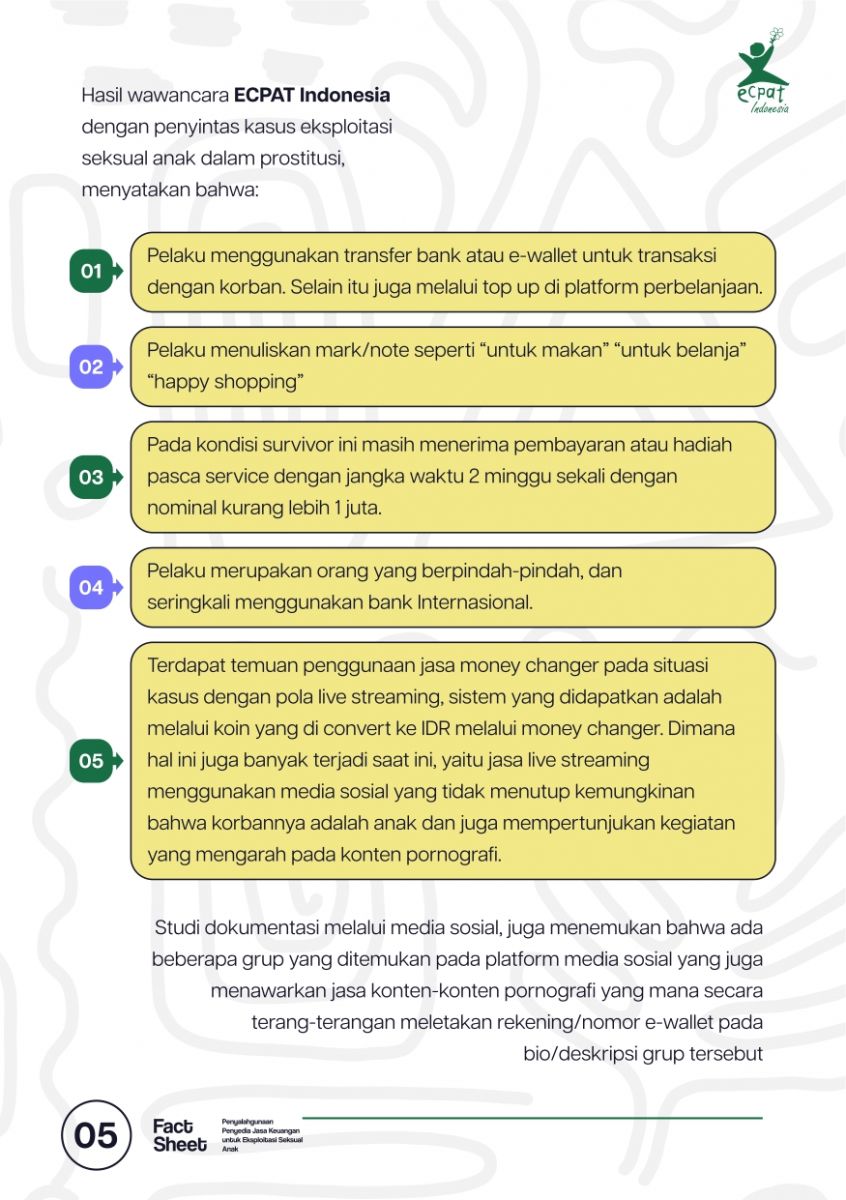 Fact Sheet : Penyedia Jasa Keuangan pada Eksploitasi Seksual Anak