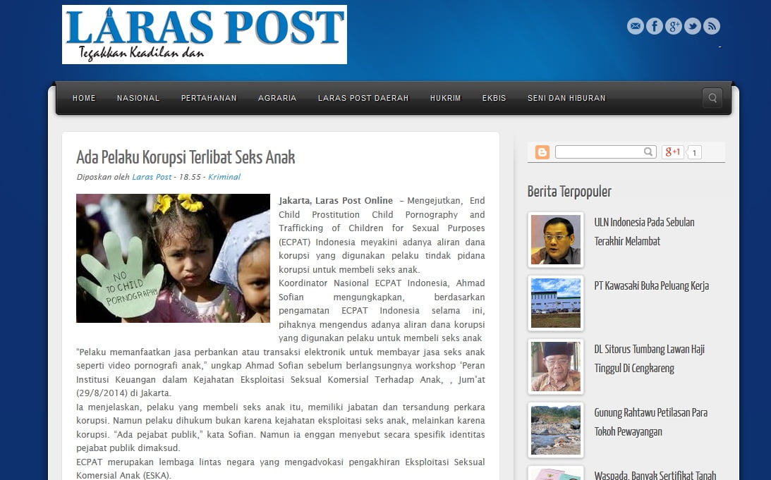Ada Pelaku Korupsi Terlibat Seks Anak 19 Jan 2015 http://www.laraspostonline.com/2014/09/ada-pelaku-korupsi-terlibat-seks-anak.html