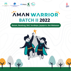 AMAN Warrior adalah sebutan untuk anak dan orang muda yang akan dipersiapkan oleh ECPAT Indonesia dan Meta menjadi pendidik sebaya untuk menggaungkan literasi digital dan keselamatan anak di ranah daring. Kamu akan bergabung dengan teman-teman di Bandung, Batam, Bali, Surabaya, Jayapura, dan Makassar untuk nantinya memberikan pelatihan kepada anak-anak di Kota Tangerang Selatan, Banjarmasin, Kendari, Prov. Jambi dan Prov. Papua Barat