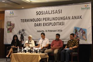 Pada tanggal 18 Februari 2020, ECPAT Indonesia diundang sebagai pembicara untuk kegiatan sosialisasi buku panduan terminologi perlindungan anak dari eksploitasi. Selain itu, kegiatan ini turut mengundang perwakilan kementerian, penegak hukum, dan kelompok masyarakat sipil dengan jumlah 84 peserta. Kegiatan ini bertujuan untuk menyosialisasikan buku panduan terminologi perlindungan anak dari eksploitasi agar para pemangku kepentingan mendapatkan informasi, memiliki persepsi dan pemahaman yang komprehensif serta dapat menjadikan buku ini sebagai rujukan umum terminologi.